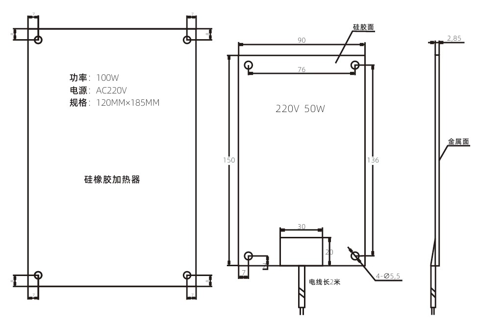 50 W 150 mm 90 mm 2,8 mm 136 76