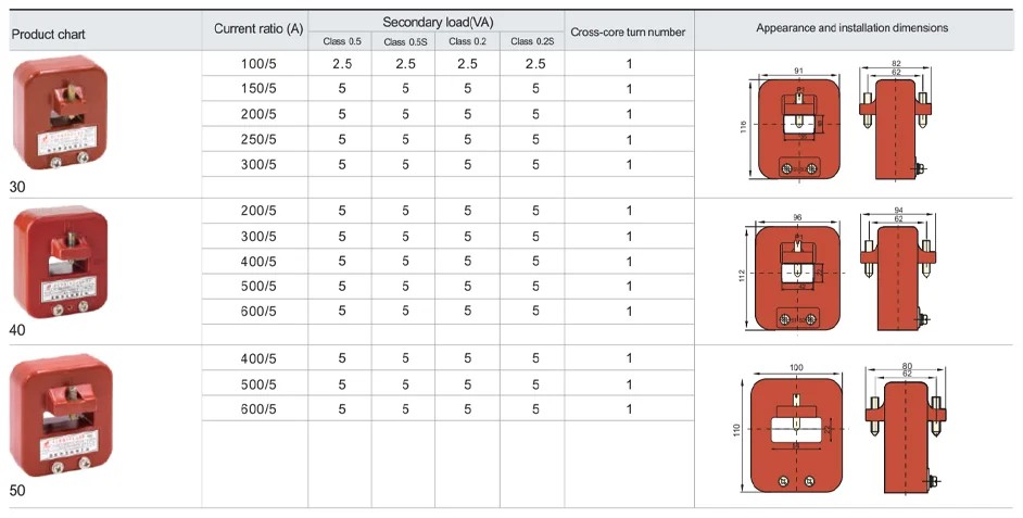 Vysoká presnosť triedy 0,5 – Prúdový transformátor LMZJ1-0,66 je navrhnutý s presnosťou triedy 0,5 na zabezpečenie stabilného a spoľahlivého merania prúdu a poskytuje spoľahlivé údaje pre monitorovacie a ochranné systémy.