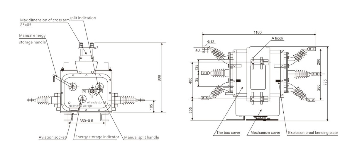 Vonkajší vákuový istič série ZW20 SF6 vyrobený v Číne tiež prichádza s extra praktickými funkciami: nadprúdová ochrana, indikátor akumulácie energie pružiny mechanizmu a letecká zásuvka pre sekundárne elektrické pripojenia. Je veľmi jednoduché spárovať s inteligentnými ovládačmi.